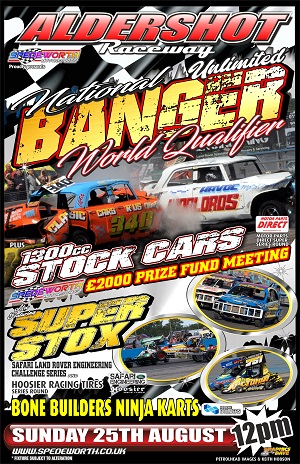 1300cc Stock Cars are always entertaining around the Aldershot oval so get yourselves booked-in to bring the £2000 prize fund into play!