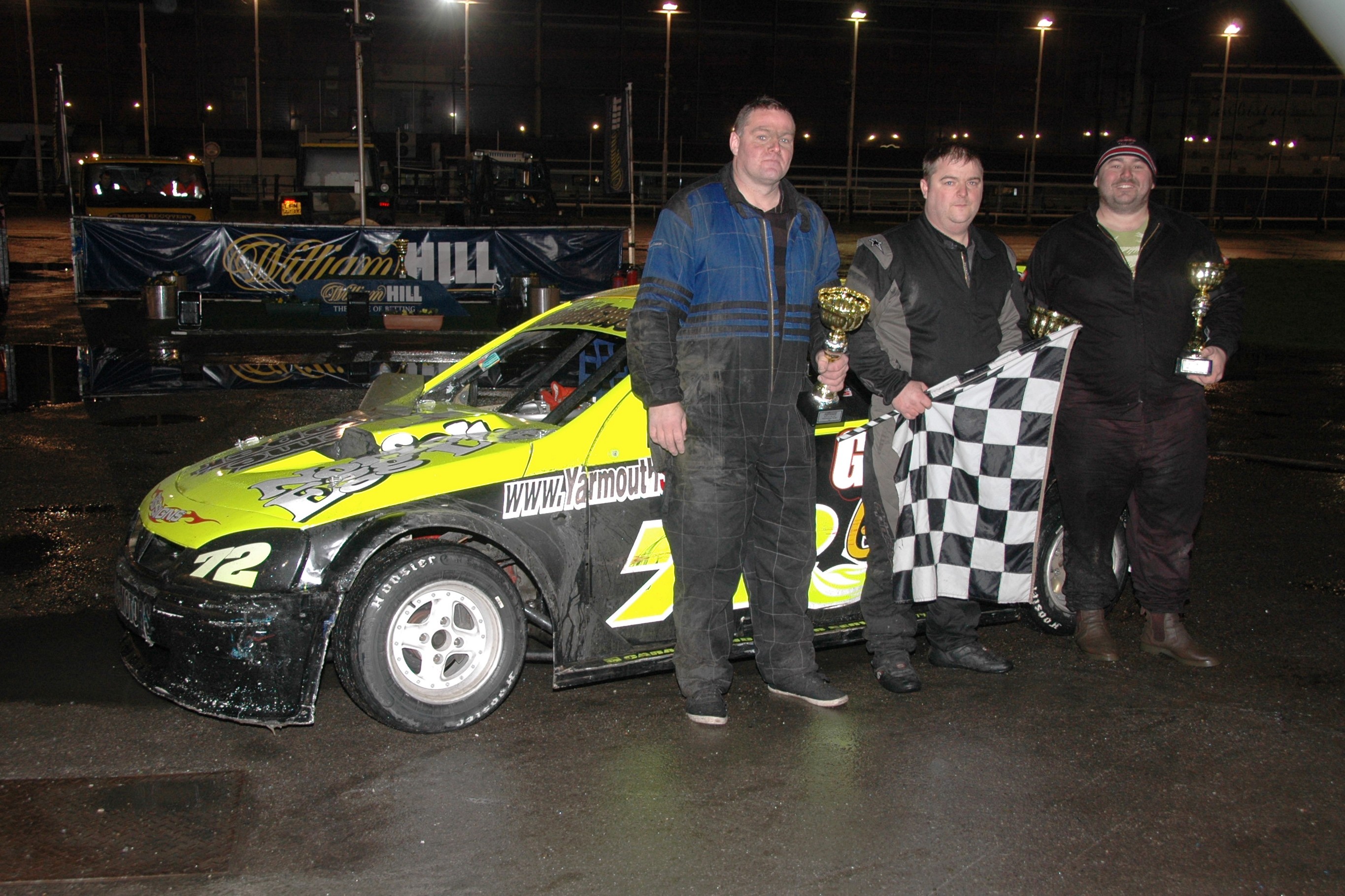 It was Fiske who took pole position following the heats having finished second in Heat One as well as winning the second race. However, on a very wet track, Fiske did not make the best of starts and while the conditions were not great the drivers all raced as hard as they would on a dry surface. Having gained two top 5 finishes in the heats, 72 Gary Goodswen found himself at the sharp end of the grid and took full advantage as the others tripped over each other to open up a sizeable lead. A yellow flag meant that every inch of an advantage that the 72 car had built up was now lost but as the other drivers closed in the former World Champion continued to drive smoothly and tick off the laps. 7 Collin Moss had driven well and found himself in second place to the 72 car as the chequered flag fell with 565 Daniel Smith in third.