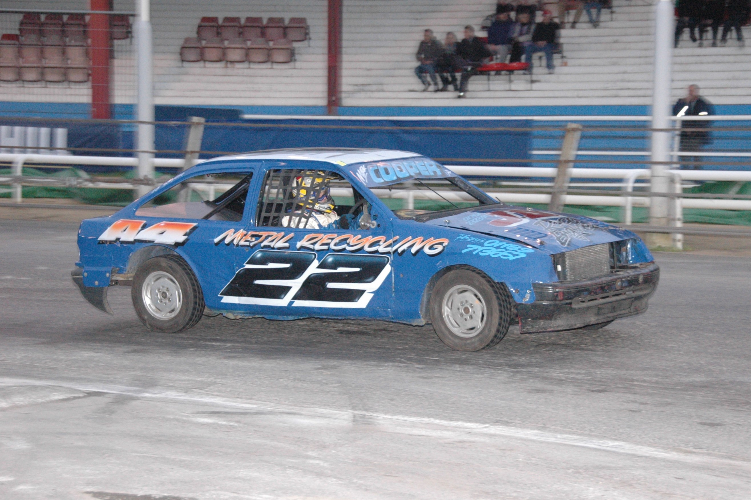 A similar winning performance in Heat Two meant that Mark was automatically upgraded to Yellow for the meeting final - meaning that the more experienced drivers were much closer to his back bumper than in the previous races. 730 Mike Daniels got closest to Mark in the early stages but was unlucky to spin himself out on the pit bend; meaning that Cooper now enjoyed a reasonable gap between himself and Ben Furness 339 in second.