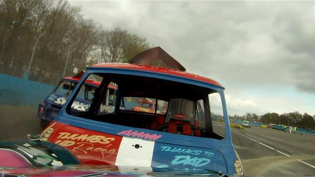 The Ministox were due another outing on Spedeworth TV so we were on board with 155 Sid Madgwick at the Southern Championship meeting at Aldershot on 15th April! We had the camera in his Mini for the first heat and the car went sick so we kept it in for heat 2 as well!