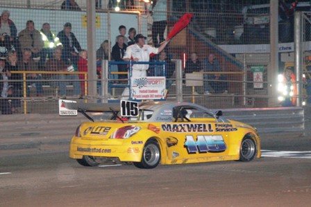 Despite a disappointing turnout of just seventeen Brisca F1 Stock Cars the sight and sound of these powerful V8 cars remains an awesome spectacle around what is for them one of the fastest tracks in the country. White top Nigel Harrhy who celebrated his birthday only the day before took the opening heat and recalled afterwards how he’d last raced at Ipswich twenty-five years ago on a speedway bike when riding for Stoke! Mick Sworder used the bumper effectively to claim second place and quickly went one better in heat two after only a handle of laps. TV star Frankie Wainman Jnr. wasn’t quite so accomplished with the front end when putting away Micky Randell on the last bend, losing out in the drag to the line for second place to Will Yarrow. These two also featured in another dramatic last lapper this time in the final. Odds-on favourite Sworder dramatically crashed out on lap one after t-boning Joshua Smith with other big names also falling by the wayside including Matt Newson and Craig Finnikin. Former Spedeworth star Colin Goodswen was having his best race so far in third until Wainman pushed him wide with three laps to go. Harrhy and Yarrow seemingly had the race sewn up between them until Wainman received an early Christmas present on the last lap when first Harrhy anticipated moves by both Yarrow and backmarker Rob Harrad that never materialised and then Yarrow’s car dramatically developed mechanical problems. All this handed the win on a plate to a delighted Wainman who smoked his tyres in time-honoured fashion as he crossed the line. Sworder’s victory burn-up was even more impressive after his commanding win in the Grand National event and a repeat next year with a few more cars to battle it out will be a ‘must-see’!