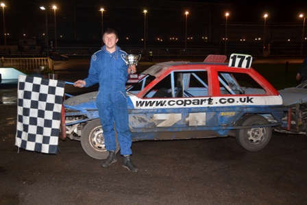 Well done to 1300cc Stock Car driver 171 Adam O'Dell for his win in the London Championship at Wimbledon on 16th December in his Nova, taking the flag after a good drive ahead of 40 Steve Marten and 79 Barry Radcliffe!