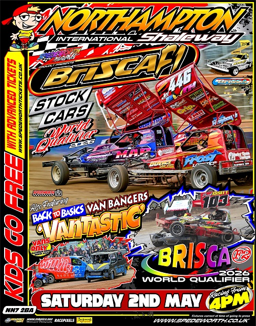 Spedeworth / Incarace would like to make all drivers and race fans aware that the start time for the event scheduled at Northampton International Shaleway on Saturday 2nd May has moved forward to 4pm due to the superb number of cars already booked in for the event.